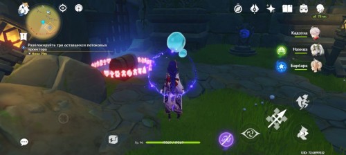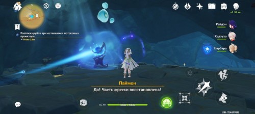 Вы попадете в комнату с 3 элементальными монументами. Попросите капельку проверить Гидро монумент, чтобы активировать его, а сами зажгите Крио и Пиро тотемы.