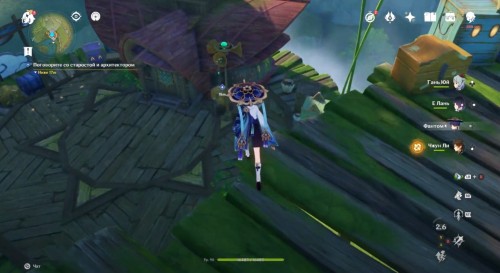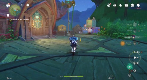 Выйдя из препринта, вступите в схватку с тремя хиличурлами, среди которых окажется один Анемо шамачурл. Они не должны вызвать у вас каких-либо проблем. Разобравшись с ними, спуститесь вниз к громкоговорителю, чтобы побеседовать с архитектором и старостой.