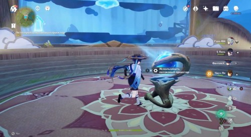 Поднимитесь еще выше, взобравшись по лесенке справа, а потом поверните налево и взаимодействуйте с потоковым проектором для попадания в двухмерное пространство. Здесь вам нужно просто собрать все Анемо частицы, пройдя направо, взобравшись на второй уровень, встав на облачко (подождите, пока сферы сами к вам не прилетят) и перейдя на третий ярус справа. Далее войдите в возникший портал.