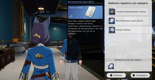 Чтобы узнать подробности произошедшего с Юйкун в прошлом, вам необходимо будет прочитать личный архив лисицы. Вы найдете его в компьютерном столе справа между голографиями бонсая. Продолжая поиски, подойдите к книжной полке в правой части помещения. Там вы обнаружите дневник женщины. После прочтения около вас появится сотрудник Летной комиссии. Отдайте ему воспоминание Цзин Юаня, чтобы он позволил вам продолжить поиски.