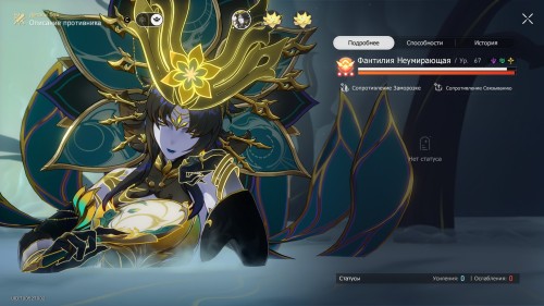 Особенностью этого «подземелья» является условие, при котором бой завершается проигрышем, если Цзин Юань погибает, поэтому вам обязательно нужно будет лечить его или ставить ему щиты. Драться же придется с Фантилией, которая уязвима к электрическому, ветряному и мнимому урону.