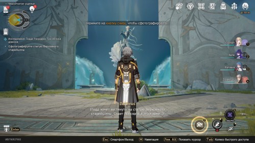 Телепортируйтесь к якорю «Монумент драконьего ливня» в Чешуйчатом ущелье» и пройдите на запад к статуе. Вскоре в правом нижнем уголке монитора должна загореться иконка фотокамеры. Нажмите клавишу «R», захватите статую в объектив (наверху должна присутствовать надпись «Цель найдена»), а потом сделайте фото. Сохранять его необязательно.