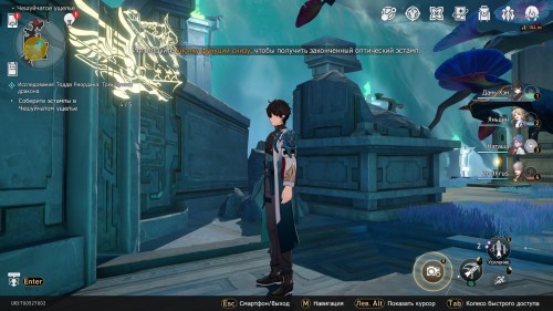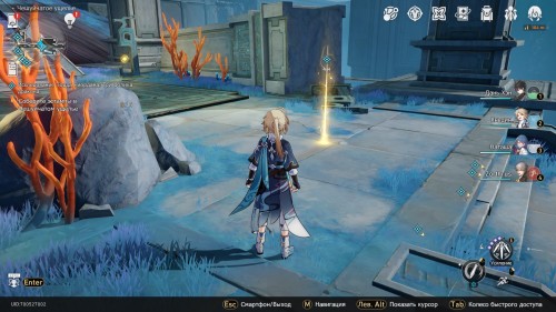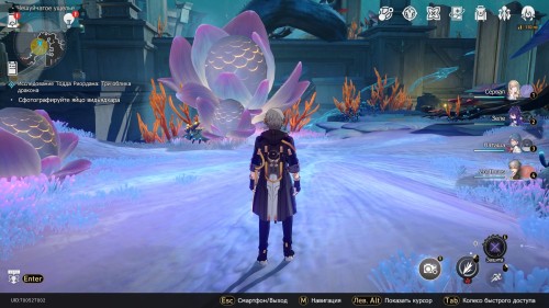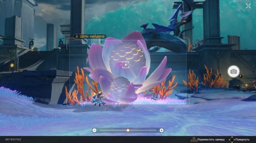 В той же локации переместитесь к якорю «Развалины дворца древнего моря», а потом поверните направо, спуститесь вниз, сверните влево и подойдите к группе огромных лиловых бутонов. Вы можете сфотографировать любой из них – главное, чтобы присутствовала надпись «Цель найдена».