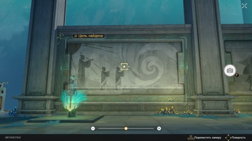 Переместитесь в «Глубины развалин дворца», а потом развернитесь и бегите вниз направо. Вам нужно пройти в развалины с фресками, где вы ранее разгадывали загадку с горящими фонариками в рамках сюжетного задания. Отметим, что вы можете сделать фотографию любого рисунка на стенах.