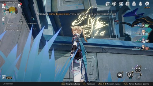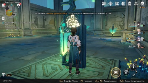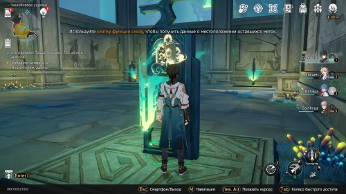 Возвратитесь к предыдущему телепорту и поверните налево. Спуститесь вниз, разберитесь с двумя группами врагов, чтобы те не мешали вам, а потом встаньте в точке, на которую указывает маркер. Включите устройство распознавания, чтобы обнаружить две части рисунка на разрушенных сооружениях.