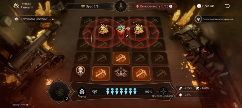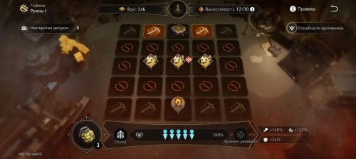 Далее мы рассмотрим прохождение глубинных уровней всех руин. Поверхность особой сложности не представляет и является своего рода обучением и знакомством с новыми механиками, глубины же требуют более обдуманного планирования ходов и расхода выносливости. По поводу поверхности мы можем посоветовать лишь по максимуму исследовать все ярусы, чтобы в глубины идти уже с повышенными уроном и защитой. Наши рекомендации по подбору отрядов одинаково полезны и для поверхности, и для глубин.