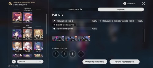 Сперва вам нужно собрать отряд. Вам стоит опираться на список противников и наследованные характеристики: повышение наносимого урона и защиты. В каждых руинах есть еще одна характеристика, на основе которой вы можете подобрать лучшую команду. Все эти параметры повышаются по мере исследования руин.