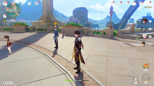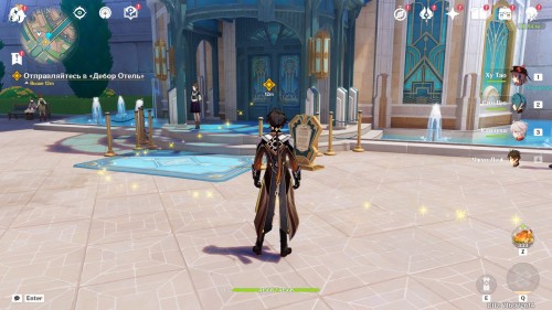 Телепортируйтесь в Фонтейн ко входу в нужную гостиницу. Войдите внутрь и посмотрите новую кат-сцену с Навией. Поговорите с ней о преступлениях и встрече с Гидро Архонтом.