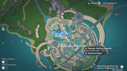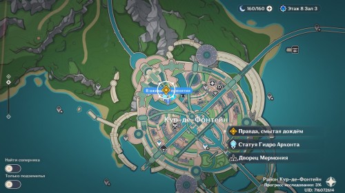 Телепортируйтесь к статуе семи Архонтов, расположенной в столице, а потом спрыгните с края площадки и спланируйте вниз, летя на восток. Подойдите к квестовому маркеру возле лестницы. Спуститесь по ней и спрыгните в канализационное отверстие, чтобы попасть на самый нижний ярус.