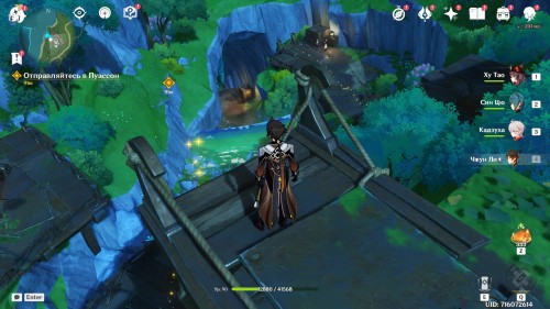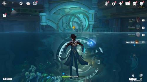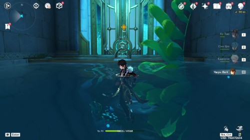 Вы вернетесь назад к Путешественнику, оказавшись в новом подземелье, то есть карты здесь не будет. Вынырните из воды и двигайтесь к квестовому маркеру. Здесь вам предстоит сразиться с сильными врагами, поэтому возьмите отряд, состоящий из хорошо прокаченных персонажей. Сменить команду можно возле врат возрождения.
