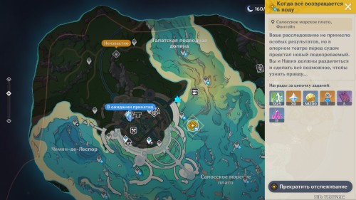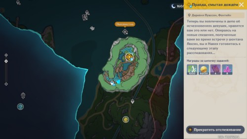 Следующим утром вы снова встретитесь с Навией. Она предложит вам посетить архив Невиллета, так как в них могла остаться информация, которая может помочь в расследовании преступления о пропавших девушках. На этом задание подойдет к концу. В качестве вознаграждения вы получите 950 очков приключений, 41,7 тысячи моры, 8 волшебной руды усиления и 4 книги героя.
