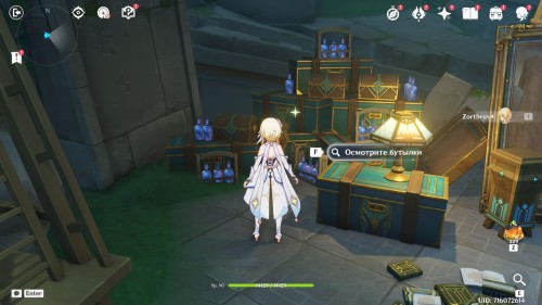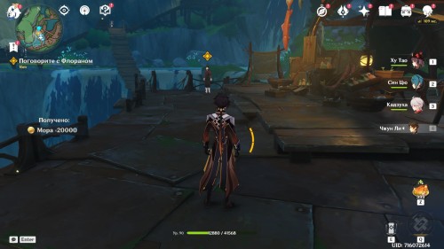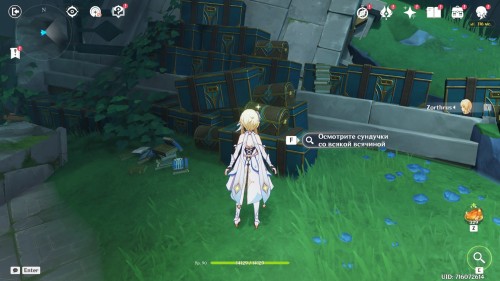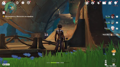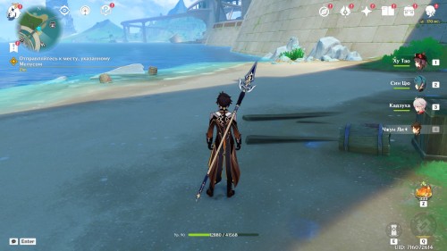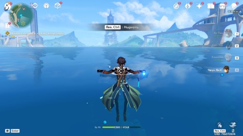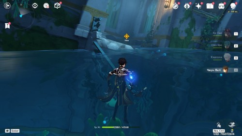 После завершения предыдущей миссии вы автоматически будете перенесены к месту, на которое указал Мелус. Пройдите в центр отмеченной области, чтобы получить новую задачу. Паймон отметит, что проход в базу, скорее всего, находится под водой, так что заплывите в водоем, а потом нажмите левый Ctrl, чтобы нырнуть.