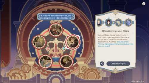 - Два выстрела – выберите улику «Показания семьи Жака».