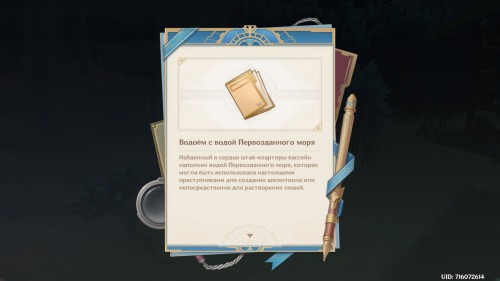 - Водоем – вы обнаружите улику «Водоем с водой Первозданного моря».