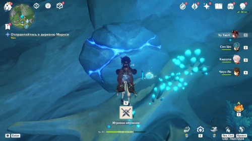 Направляйтесь в Безлюдное место, находящееся в той же пещере. Пройдите через тоннель, пока не окажитесь в просторной области. Дойдя до квестового маркера, вы узнаете, что собрать новую руду не так-то просто – необходимо встать позади призмы и при этом повернуть камеру в сторону месторождения.