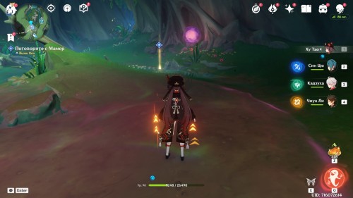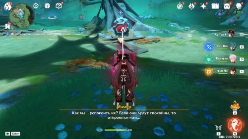 Затем войдите в тоннель и пройдите по нему вперед, разблокировав по пути обычный сундук (его защищают Гидро слаймы). Продолжайте идти вперед. Вы встретите Косынзяну, которая сама заговорит с вами. Идите дальше, и вы увидите Мамер, стоящую справа от еще одного телепорта, – поболтайте с ней.