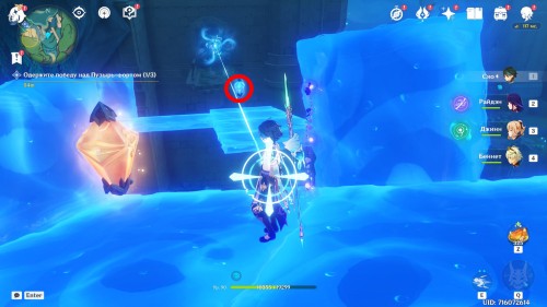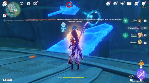 Приблизьтесь к кристальному механизму на краю площадки и ударьте по нему для создания дорожки к следующему устройству. Старайтесь не попадать под снаряды, иначе вы вернетесь к точке старта. По пути соберите гидрокул.