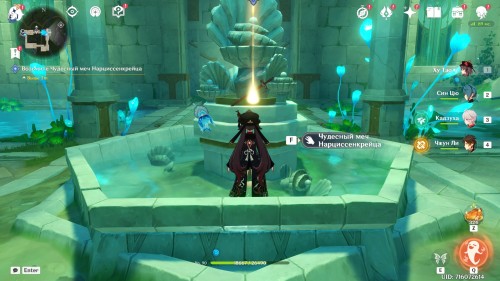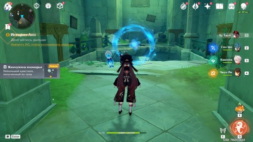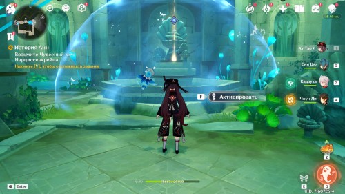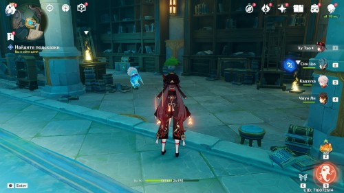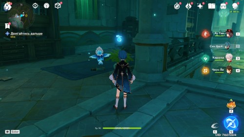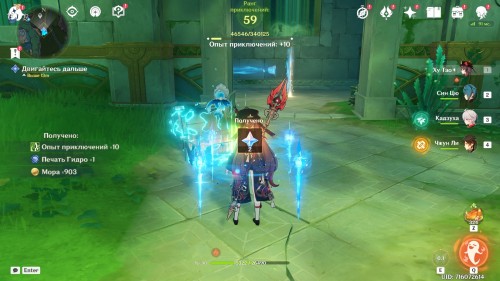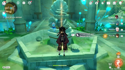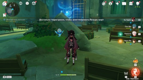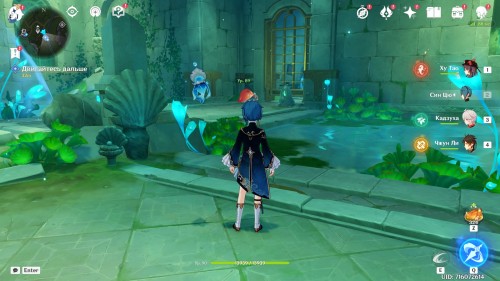 Находясь в библиотеке, бегите к решетке впереди. Далее вам нужно либо собрать 3 гидрогранума, чтобы создать ядро и встать рядом с кристаллом разведки уровня воды, либо выбрать Гидро персонажа, способного постоянно наносить Гидро урон (например, бесплатную Барбару или Гидро Путешественника) и ударять водяными атаками синюю лампу, пока не откроются ворота.