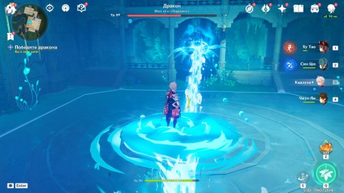 Войдите на арену. Вы столкнетесь с океанидом, который будет называть себя Драконом. Как и обычный босс, он будет вызывать различных мимиков. Нужно вставать на прерывистые пороги (водяные площадки) для уклонения от мощных ударов врага.