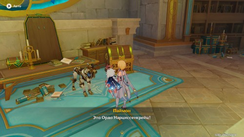 Разобравшись с указанными требованиями, возвратитесь в Институт натурфилософии (находится немного к югу от столицы Фонтейна), переместившись к северному телепорту. Затем бегите вперед к противоположной части помещения. Поднимитесь по лесенке, подойдите к столу и выберите опцию «Читать»