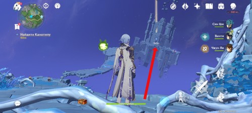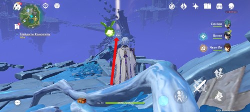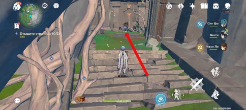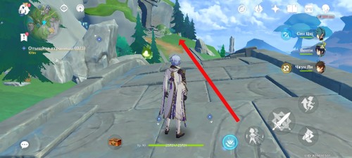 В одном месте вам придется уничтожить двух хиличурлов, чтобы отправиться на другую сторону обрыва.