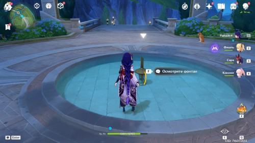 Войдите в воду и кликните по надписи «Осмотреть фонтан»