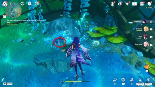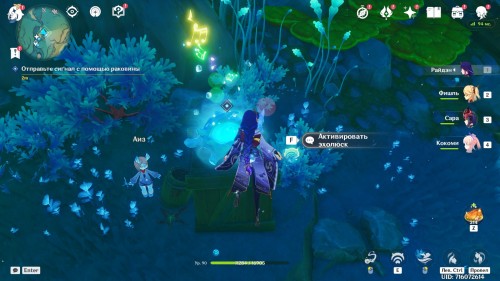 Аиз отметит, что найденных доказательств недостаточно, поэтому предложит снова отправить сигнал. Выберите любой из предложенных, а затем вновь ударяйте по раковине нужными вариантами элементального навыка.