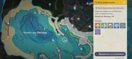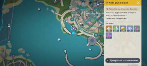 Сперва убедитесь, что у вас открыты ежедневные поручения в Фонтейне. Дейлики становятся доступны после прохождения квеста «Новые горизонты приключений» – перейдя по ссылке, вы можете узнать другие требования, необходимые для получения ежедневок в Фонтейне.