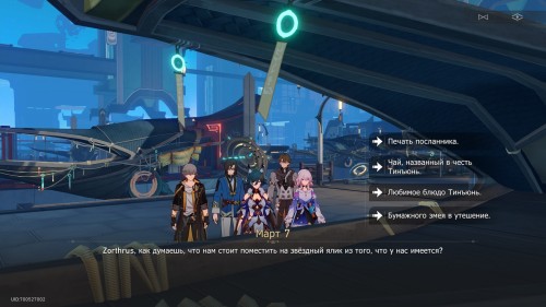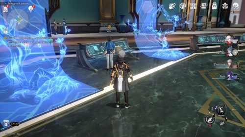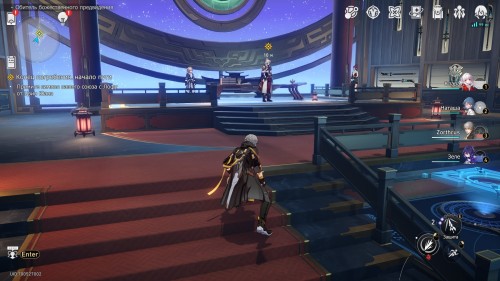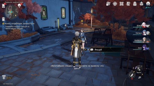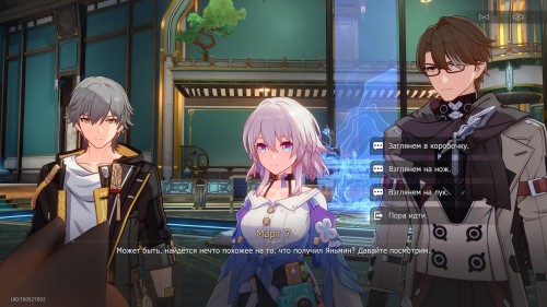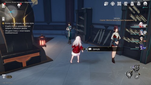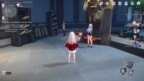 После беседы с Фу Сюань вы можете либо сразу отправиться в отмеченную локацию, либо для начала поговорить со своими попутчиками, чтобы обсудить дальнейшие планы (необязательно). Март 7 и Вельт находятся с левой стороны обители, а Дань Хэн и Цинцзу – с правой.