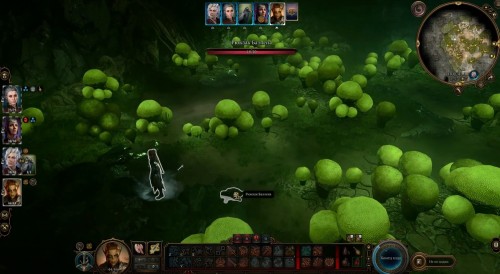 На карте появится большая область, показывающая примерное расположение нужного вам персонажа. Двигайтесь к этому кругу. Как только вы доберетесь до поляны (X: -19, Y: 083), на которой растут бибербангами, – шарообразные грибы, взрывающиеся при приближении кого-либо и оставляющие после себя ядовитый туман, – тут же начнется кат-сцена с Баэленом.