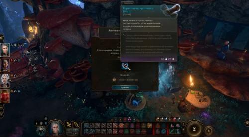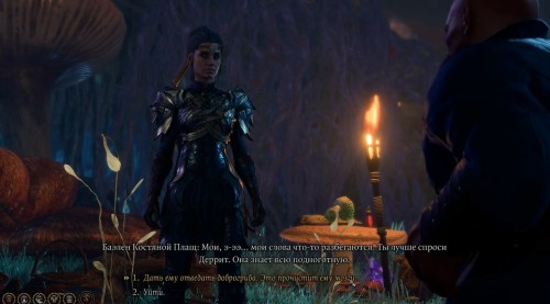 Лучше всего передать доброгриб одному из трех персонажей. Вы можете отдать растение Деррит, которая собирается продать его во Вратах Балдура, поправив тем самым свое финансовое положение. Она ничего не даст вам взамен (если только вы не пройдете проверку на Запугивание), но поблагодарит и скажет, чтобы вы обязательно посетили ее аптеку в городе, – вам предоставят скидки на товары.
