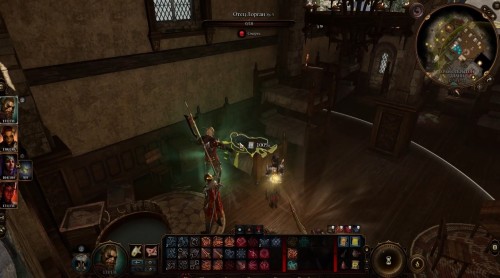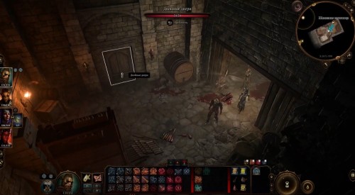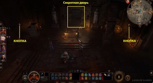 Возвратитесь в храм и двигайтесь на кухню. Здесь вы обнаружите Украшенный деревянный люк (X: -63, Y: 5) на полу. Взаимодействуйте с ним для попадания в подвал. Пройдите вперед и сверните направо к двойной двери. Вы попадете в темное помещение со статуями и столом посередине (X: 13, Y: -1006). Тут вам нужно будет взаимодействовать с двумя кнопками по бокам для открытия секретной двери.
