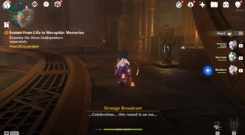 Послушайте информацию, транслировавшуюся мегафоном, а затем осмотрите 3 отдельных мегафона и направляйтесь в указанное место. В конце побеседуйте с Клайнсом. В награду вы получите 200 очков приключений, 30 примогемов, 30 тысяч моры и 280 премиальных купонов. Подробное прохождение квеста представлено в отдельном гайде.