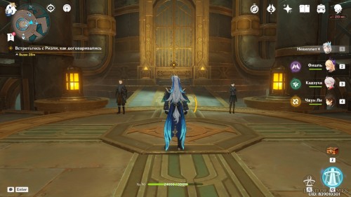 Дождитесь 18:00-00:00 вечера, чтобы наведаться к Ризли в кабинет. Для этого просто переведите часы в меню Паймон на нужный период. Офис герцога находится в административном районе. Когда вы войдете внутрь, поднимитесь наверх.