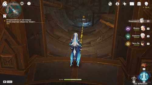 Далее переместитесь на нижний этаж производства. Как только вы там окажетесь, идите следом за Ризли. Вскоре Паймон увидит убегающих членов общества. Бегите за тем, который отмечен квестовым маркером.