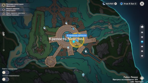 Второй способ попроще – нужно отправиться на Восточный склон Мон Эсус, расположенный на севере Фонтейне, и спрыгнуть здесь в воду. Погрузитесь и начните плыть к огромной башне с прожекторами. Далее сделайте так, чтобы вас подсветил один из прожекторов. Подождите примерно 5 секунд, и вы автоматически окажитесь внутри тюрьмы, где вас обвинят в незаконном проникновении. Вы должны будете зарегистрироваться у Монглан, после чего сможете без проблем исследовать крепость. Ограничений по рангу приключений в этом случае нет – можете приплыть сюда сразу же после попадания в Фонтейн.