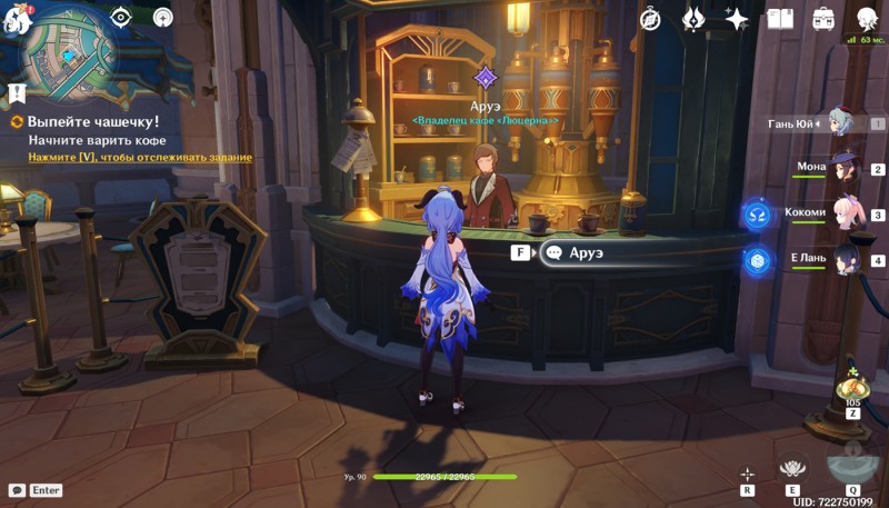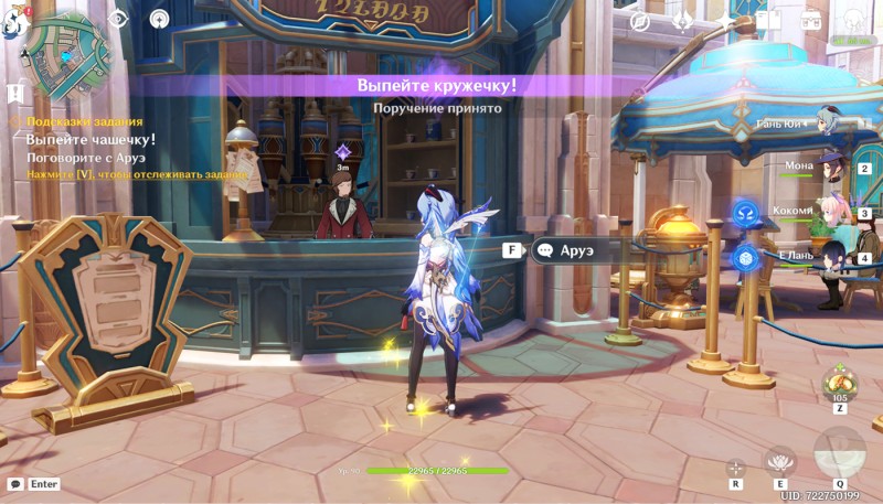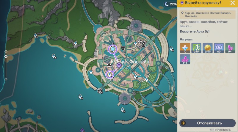 В Genshin Impact «Выпейте чашечку!» являются цепочкой ежедневных миссий в столице Гидро региона, Кур-де-Фонтейн. Путешественник откроет для себя возможность побыть в роле бариста и помочь Аруэ с наплывом посетителей. Из этого гайда вы узнаете, как успешно выполнить поручения и сварить напитки, а также получить скрытое достижение «Превосходный вкус».