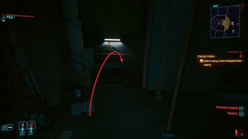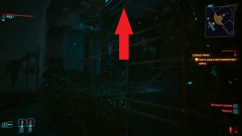 Если вы захотите все же обойти часть неприятелей, можно выбраться на улицу и забраться наверх, на козырек над входом. Справа на нем есть проход на лестницу, спустившись по которой, можно открыть дверь Риду, а затем уже вместе с ним подняться наверх, до вентиляционной шахты.