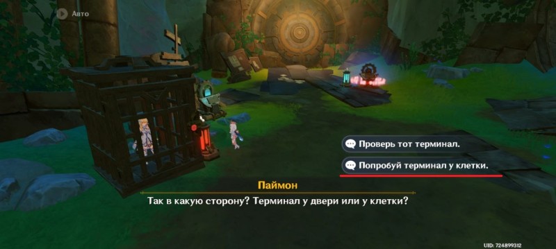 Кьюзель обманом заманит вас в клетку и уйдет. Теперь вам предстоит помочь Паймон высвободить вас. В разговоре с компаньоном выберите следующие варианты: