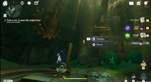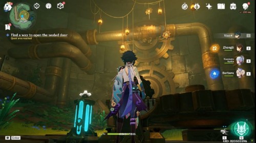 Вы попадете в помещение с двумя механизмами. Сперва подойдите к тому, что у входа. Переместите шестеренку и начните вращать. Когда часть трубы встанет вертикально, остановите механизм.