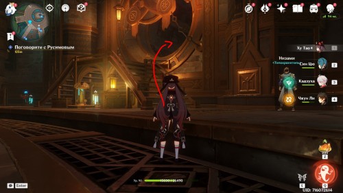 Теперь идите на арену. Если вы не знаете, куда идти, то нажмите на клавишу «V», и тогда на земле появится светящаяся дорожка, показывающая нужный маршрут. Воспользуйтесь подъемником, чтобы спуститься вниз, а затем пообщайтесь с Русимовым.