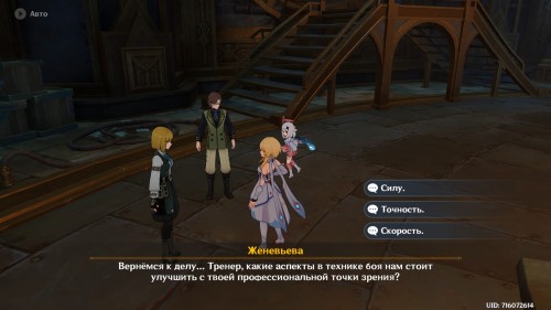 Как только возникнут проблемы с оборудованием, и на арене появится вода, старайтесь как можно чаще применять навык Пуаре, чтобы замораживать противника и безнаказанно бить его. Петарды девушки же будут вызывать мощные реакции. В целом этот бой будет не очень сложным. После поединка снова поболтайте со своими учениками.