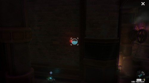 Когда беседа завершится, взаимодействуйте с терминалом, стоящим позади стражницы, чтобы активировать камеру. Затем наведите объектив на красную лампочку на стене напротив для смены ракурса. После этого посмотрите на изображение шестерни на стене. Изучите появившийся текст. Теперь можете выйти из режима видеонаблюдения.