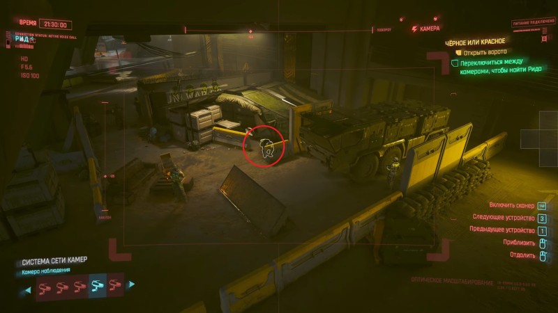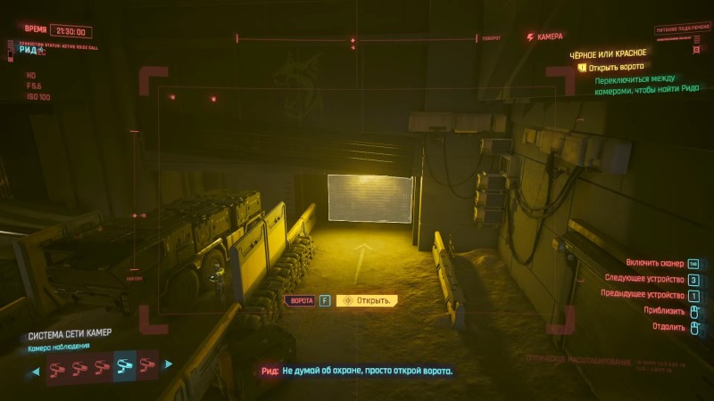 Используйте монитор охранников и найдите камеру, отслеживающую склад, на который пробрался Рид. Наведите камеру на ворота и используйте подсказку, чтобы открыть их. На терминале можно использовать, например, комбинацию: 55 - BD - 1C - BD - 55. Отключаясь от терминала, можно в принципе выключить видеонаблюдение во вкладке локальной сети, что может оказаться небесполезным в дальнейшем.