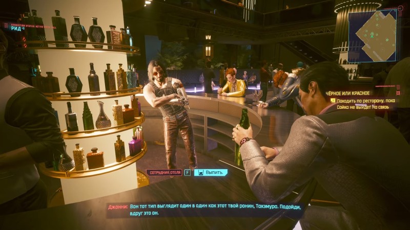 Следуйте за квестовым маркером и присоединяйтесь к Риду в баре. После разговора с компаньоном гуляйте по танцполу, пока Сойка сама не выйдет с вами на связь.