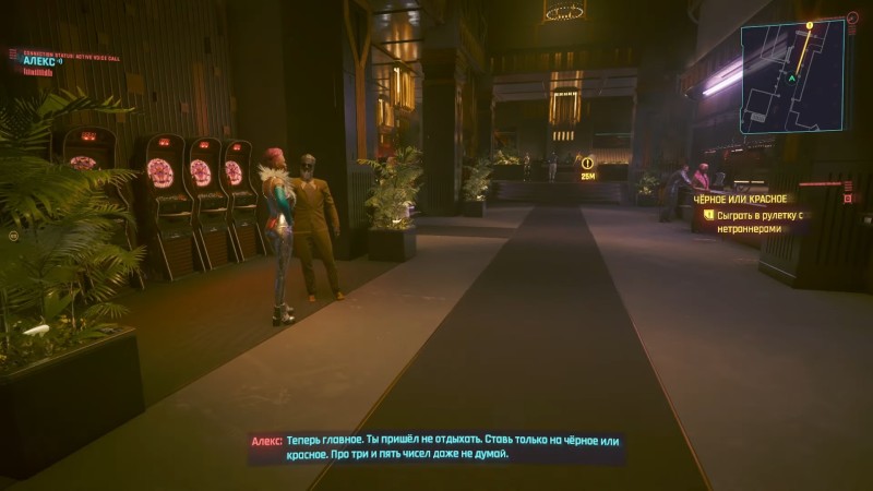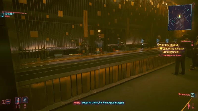После игры к беседе присоединиться Курт и ясно даст понять, что Ви и компании здесь не рады. Остается только порадоваться, что раскрытие вашей личности закончилось всего лишь добровольным выдворением из заведения. Обменяйте фишки на валюту и выходите из здания, на этот раз через фойе, как все обычные посетители.