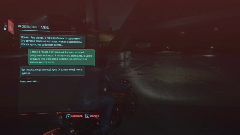 По прошествии игрового дня вы побеседуете с Ридом по телефону, можно также прочитать текстовые сообщения от Сойки и Алекс. Как раз последнюю и нужно навестить в «Мотыльке», так что снова направляйтесь в Береговые трущобы и загляните в бар, который уже стал основной штаб-квартирой вашей компании.