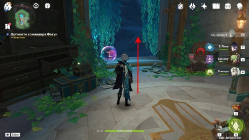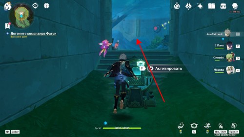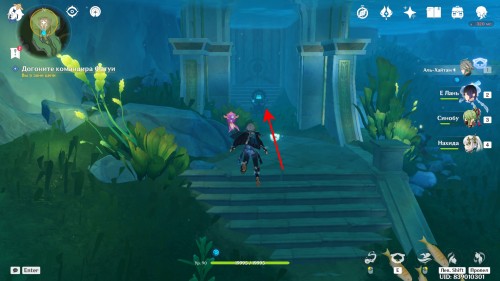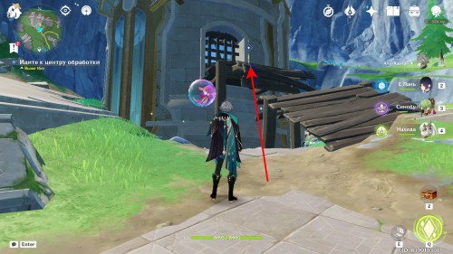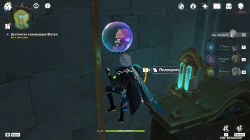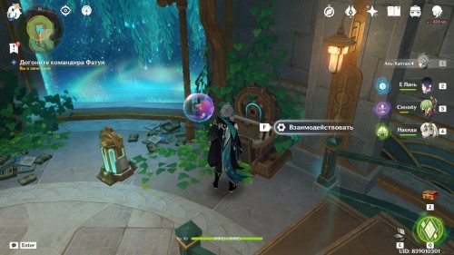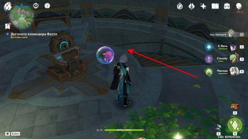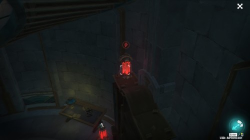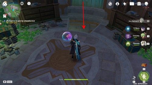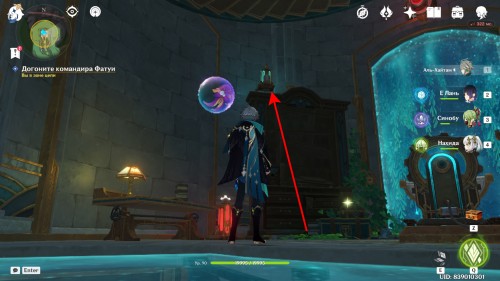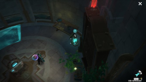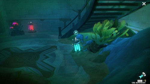 Проплывите вокруг башни. Там вы увидите следующий механизм. Взаимодействуйте с ним, чтобы переместиться в камеру. Возьмите энергию из правого накопителя и переместите в левый. После этого дверь откроется.