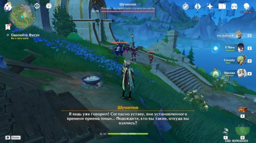 Отправляйтесь в Район Лиффи. Идите от телепорта по дороге на север. В итоге вы увидите перед собой башню. Зайдите внутрь и поднимайтесь наверх. Там на каждом этаже вас будут ждать застрельщики Фатуи. Вам необходимо уничтожить их всех. На последнем доступном лестничном пролете вы услышите неизвестный голос. Так и начнется квест.