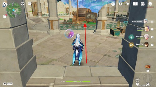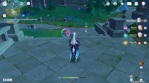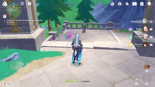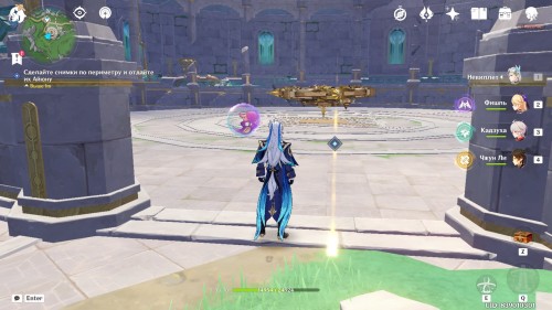 Следующей локацией на вашем пути станет Академический зал собраний. Спуститесь от телепорта вниз по лестнице, чтобы начать диалог с Айюном, в котором он обратится к вам с просьбой сделать фотографии окружающих руин.